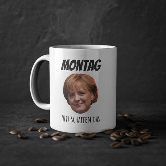 Angela Merkel Meme Tasse "Wir schaffen das" – Lustige Büro-Motivation am Montag